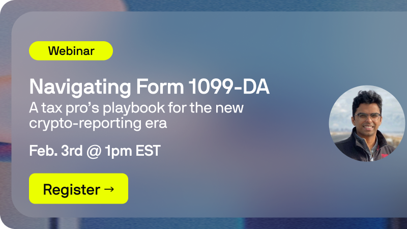 - [Webinar] Navigating Form 1099-DA: A tax professional's playbook for the new crypto-reporting era